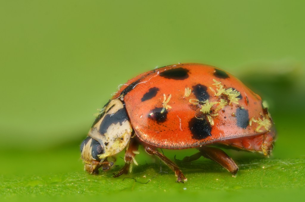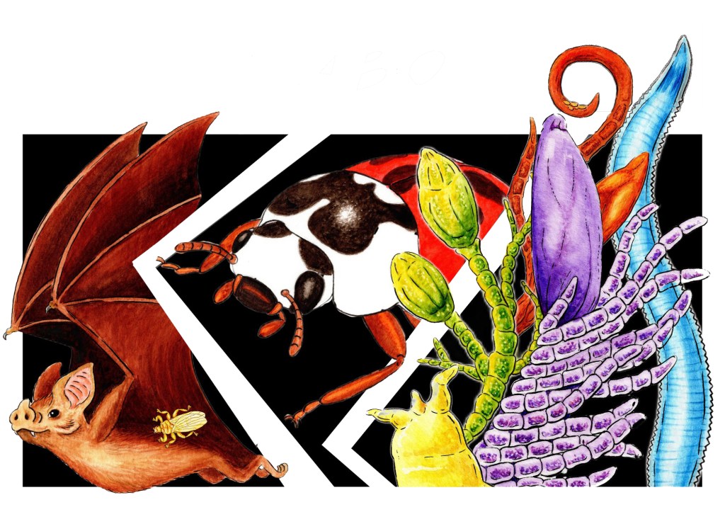 Laboulbeniales are a group of fungi that live on the outside of a variety of arthropods. Unlike other fungi, they do not form hyphae nor a mycelium but instead produce multiple 3-dimensional structures called thalli, which “hang” onto their host. This is where the common name for the group comes from: beetle hangers. While some species of Laboulbeniales are only superficially attached to their host, others are more invasive; they penetrate the outside of their host with a piercing structure called a haustorium, which makes contact with the body cavity to draw nutrients. Laboulbeniales are found primarily on beetles, but also on flies, mites, harvestmen, cockroaches, and millipedes, among others. Though researchers have known about Laboulbeniales since the 19th century, they are still a poorly studied group of organisms. An average of 16 new species of Laboulbeniales are formally described every year. Thus far, 2,325 species and 146 genera of Laboulbeniales are known.